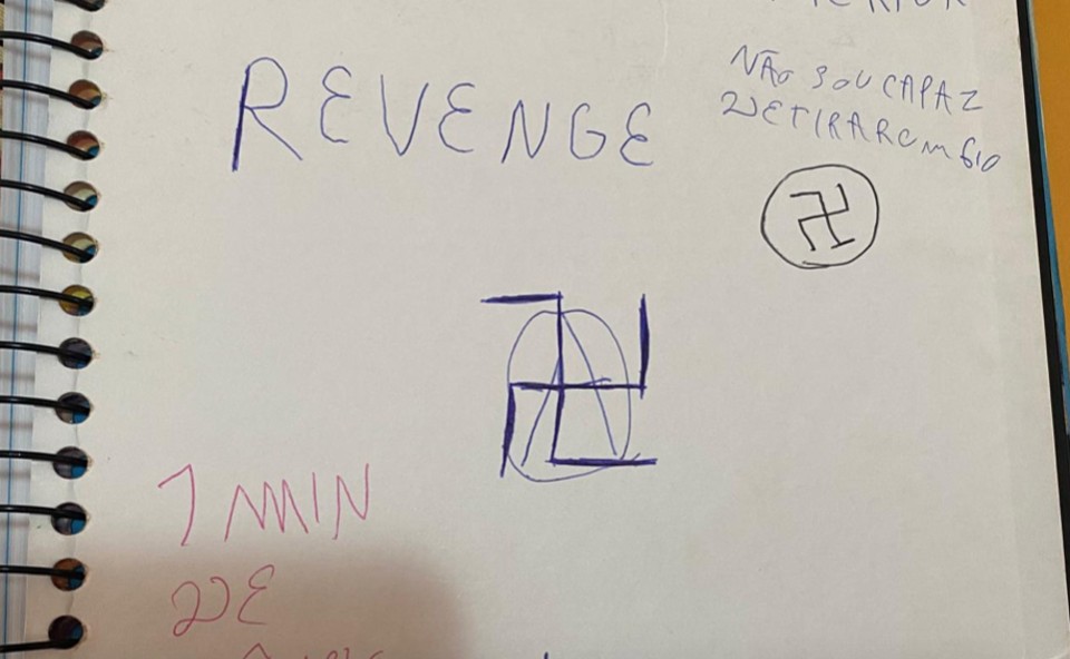Caderno de jovem que planejava ataque a escola de Goiânia tem símbolos nazistas