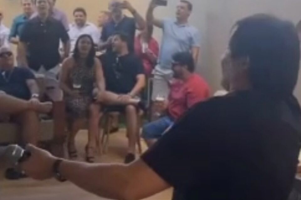 Trecho do vídeo com aglomeração dos prefeitos de Cachoeira Alta e Caçu (Foto: Reprodução)