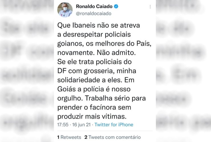 Por G1 GO O governador Ronaldo Caiado se manifestou em uma rede social sobre a fala do governador do Distrito Federal, Ibaneis Rocha, que questionou a força-tarefa para busca de Lázaro Barbosa, suspeito de matar uma família em Ceilândia. “Que ...