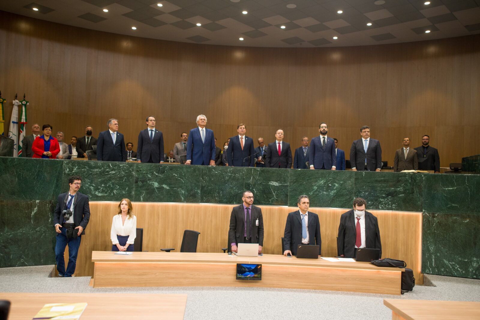 Ao fazer um balanço da última legislatura, o presidente da Alego, deputado Bruno Peixoto, reconheceu o impacto positivo da parceria. “Estamos colhendo resultados de sua gestão na economia, saúde, segurança pública e outras áreas. Essa Casa contribuiu para mudanças significativas que garantem um futuro seguro, estável e próspero”, pontuou Peixoto. Também participaram da sessão o presidente do Tribunal de Justiça (TJ-GO), desembargador Carlos Alberto França; o procurador-geral de Justiça, Cyro Terra Peres; o presidente do Tribunal de Contas do Estado (TCE-GO), Saulo Mesquita; e o defensor público-geral de Goiás, Tiago Gregório.